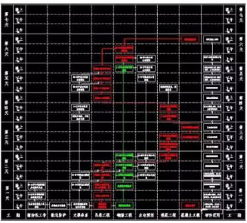 其中紅色部分為關(guān)鍵工作,其余為非關(guān)鍵工作。