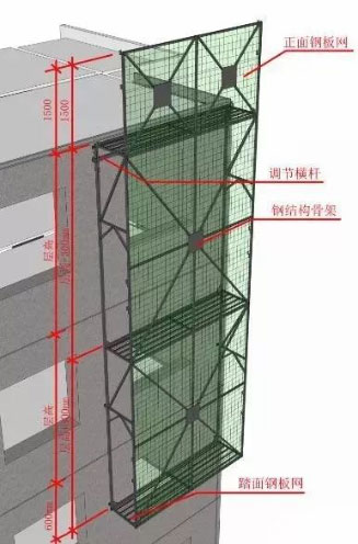 空調(diào)板、陽(yáng)臺(tái)板處采用輪扣式支撐,兼做外防護(hù)。橫桿長(zhǎng)度采用600mm、900mm、1200mm。